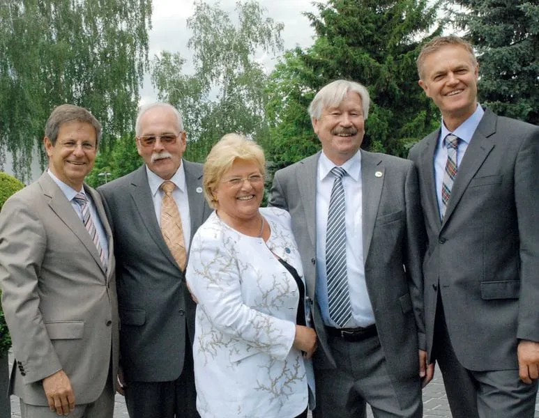 Rolf Wilhelm (2.v.li.), Elisabeth Schönwiese und Wolfgang Vollmer (2.v.re.) traten nach zusammen fast 60 Jahren im Vorstand nicht mehr zur Wahl an. Hier sind sie mit Landesinnungsmeister Thomas Conrady (li,) und Innungsgeschäftsführer Wolfram Schlegel zu sehen.