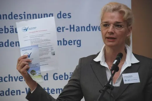 Victoria Elwing, stellvertretende Geschäftsführerin der Innung, stellte die Zertifizierung des Qualitätsverbunds Gebäudedienste vor. Die nächste Eingangsschulung findet am 23. und 24. Nobember in Hannover statt. Die QV-Zertifizierung macht auch den Weg zum Fachforum auf www.qv-gebaeudedienste.de frei.