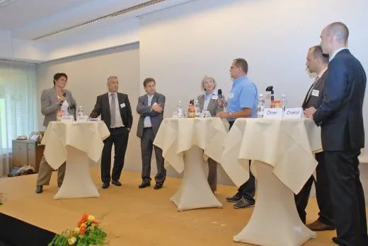 Um Integration in der Gebäudereinigung ging es auch bei einer Podiumsdiskussion. Mit Moderatorin Andrea Blome diskutierten Adnan Alatas (Haase-Gruppe), Karl Breer (Breer Gebäudedienste), Gudrun Gratz-Fister (Lieblang Gebäudedienste), Tibor Kawasch (Kawasch Dienstleistungen), Muhammed-Ali Öner (MCS) und Petar Drakul, Referatsleiter Integration und Arbeitswelt im Ministerium für Integration Baden-Württemberg. Deutlich wurde einmal mehr: Im Gebäudereiniger-Handwerk gibt es einen hohen Anteil an Beschäftigten mit Migrationshintergrund, in einem Betrieb arbeiten häufig Mitarbeiter aus Dutzenden von Nationen. Lässt sich diese Vielfalt nutzen? Ja, meinten die Branchenvertreter auf dem Podium, die sich am Ende einig waren: „Wir in der Gebäudereinigung sind in Sachen Integration zwei Schritte weiter als andere Branchen.“