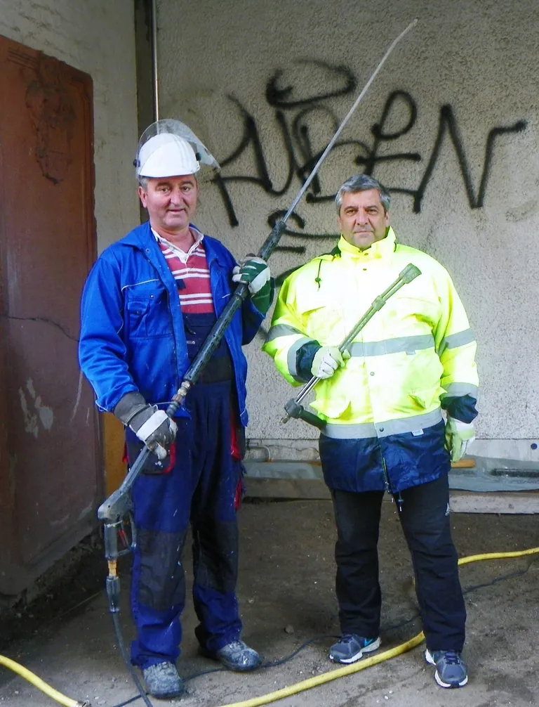 Gebäudereinigermeister Uwe Flohr und seine Kollegen waren 20 Stunden im „Weser 5 Tagestreff“ im Einsatz. Mit zwei Hochdruckreinigern samt Lanze und Zubehör entfernten sie drei große Graffiti. Außerdem reinigten sie eine über 100 Jahre alte Sandsteintafel und beseitigten Brandspuren an den Hauswänden.