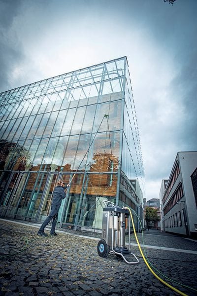 Unger bringt mit dem HydroPower RO S das Einstiegsmodell der mobilen RO-Wasserfiltersysteme auf den Markt und schließt ­damit eine Lücke im Angebot seiner Umkehrosmose-Filtersysteme. Das handliche Modell liefert 200 Liter Reinwasser pro Stunde für die rückstandsfreie Reinigung von Fenstern und ­Fassaden, ­besonders in Gegenden mit hartem Wasser. Für extrem verschmutzte Flächen steht die Boost-Funktion zur Verfügung. Mit bis zu 1.000 Liter Wasser pro Stunde werden Verunreinigungen einfach weggespült, auch an Stellen, die mit der Bürste nur schwer zu erreichen sind.