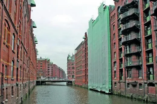 Wie säubert man eine historische Fassade und erhält dabei ihre Patina? In der von Fleeten durchzogenen Hamburger Speicherstadt setzt ein Reinigungsspezialist aufs Trockeneisstrahlen: Dies sei nicht nur umweltverträglich und wirtschaftlich, sondern bedeutet auch verfahrensbedingt einen geringeren statischen Aufwand für das Baustellengerüst über dem Wandrahmsfleet.