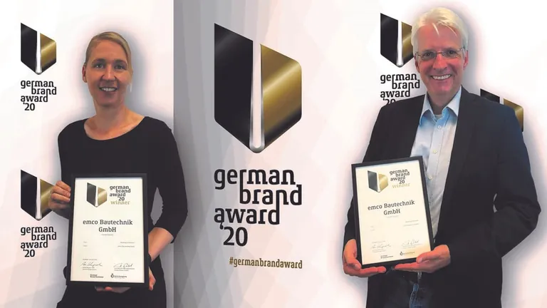 Emco Bau ist beim German Brand Award 2020 in der Kategorie „Excellent Brands - Building & Elements“ ausgezeichnet worden. Der Preis wird für erfolgreiche Markenführung in Deutschland vergeben.