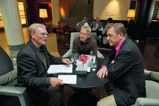 Josef Haentjes (Fachbereichsvorsitzender IHO, rechts) und Dr. Heiko Faubel (Geschäftsführer IHO; Mitte) im Gespräch mit Chefredakteur Peter Hartmann. - © Messe Berlin