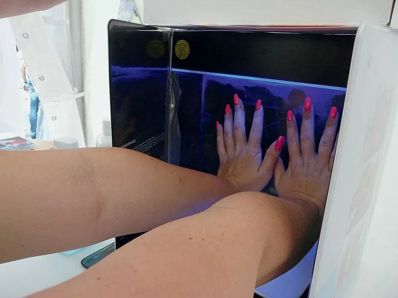 Der Stand der Innung war mit drei Mitarbeiterinnen der Geschäftsstelle sowie Robert Hentschel, Meister bei gepe Peterhoff in Düren, und Daniel Kleefuß, Geselle bei Rheinland Kultur in Pulheim, besetzt. Angeboten wurde zum Beispiel hygienische Händedesinfektion, bei der mithilfe von Testmittellösung und UV-Lampe zu sehen war, ob die Händedesinfektion gut durchgeführt wurde.