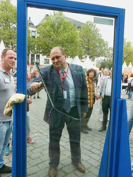 Viele Besucher interessierten sich auch für die professionelle Glasreinigung und versuchten sich selbst an der Glaswand. Sogar die Kölner Oberbürgermeisterin Henriette Reker und Handwerkskammer- und ZDH-Präsident Hans Peter Wollseifer versuchten sich an der Übungsscheibe.Dabei mussten sie feststellen, dass die richtige Technik schon gelernt sein will. Rundum war der Tag des Handwerks für die Innung Köln-Aachen eine erfolgreiche Aktion.