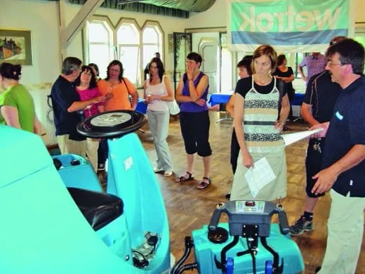 - Zur Nachlese der ISSA/Interclean, Amsterdam, veranstaltete Wetrok Deutschland im Juli eine Tagesmesse in Salem am Bodensee, damit auch die Kunden aus den Regionen Stuttgart, München und dem Bodenseeraum, die nicht nach Amsterdam kommen konnten, die Neuheiten des Schweizer Herstellers und die damit verbundenen Reinigungsmethoden aus erster Hand erleben konnten. In exklusiven Räumlichkeiten und bei bester Bewirtung im Reck’s Hotel, Salem-Neufrach, wurden die Produkte Wetrok-Samba (Minischeuersaugautomat) sowie Wetrok-Scuba (Rückentragestaubsauger) und die Wetrok-Ökoreinigungschemielinie in Praxis und Theorie vorgestellt. Wetrok Deutschland war mit Geschäftsleitung und Kundenberatern aus Süddeutschland angereist, um die Kundennähe und das Vertrauen zu den Produkten zu vertiefen. In Fachgesprächen wurde die Vielfalt und Problemstellung der täglichen Reinigung besprochen objektbezogen im Hinblick auf Bodenbelagarten, Reinigungsabläufe, Einsatz von Maschinen, Geräte und Produkte.