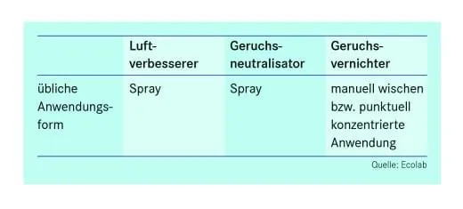 - Sind nach dem Reinigen noch unangenehme Gerüche vorhanden, sollte man je nach Ursprung einen Geruchsneutralisator oder einen Geruchsvernichter einsetzen.