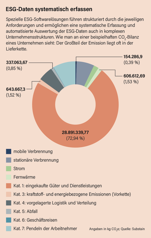 Trotz der Herausforderungen gibt es Wege, die ESG-Anforderungen pragmatisch umzusetzen. Ein zentraler Punkt ist die Digitalisierung. ESG-Softwarelösungen ermöglichen eine effiziente Datenerfassung und -auswertung. Prozesse wie die Erstellung von CO2-Bilanzen lassen sich automatisieren, was nicht nur Zeit, sondern auch Kosten spart. ESG-Softwarelösungen wie zum Beispiel Substain führen strukturiert durch die jeweiligen Anforderungen – von der doppelten Wesentlichkeitsanalyse über die CO2-Bilanz bis hin zur ESG-Datenerfassung – und ermöglichen eine systematische Erfassung und automatisierte Auswertung der ESG-Daten auch in komplexen Unternehmensstrukturen. Systeme, die nach dem Single-Input-/Multiple-Output-Prinzip arbeiten, ermöglichen dabei die Mehrfachnutzung aller Datenpunkte für die verschiedenen Regularien.