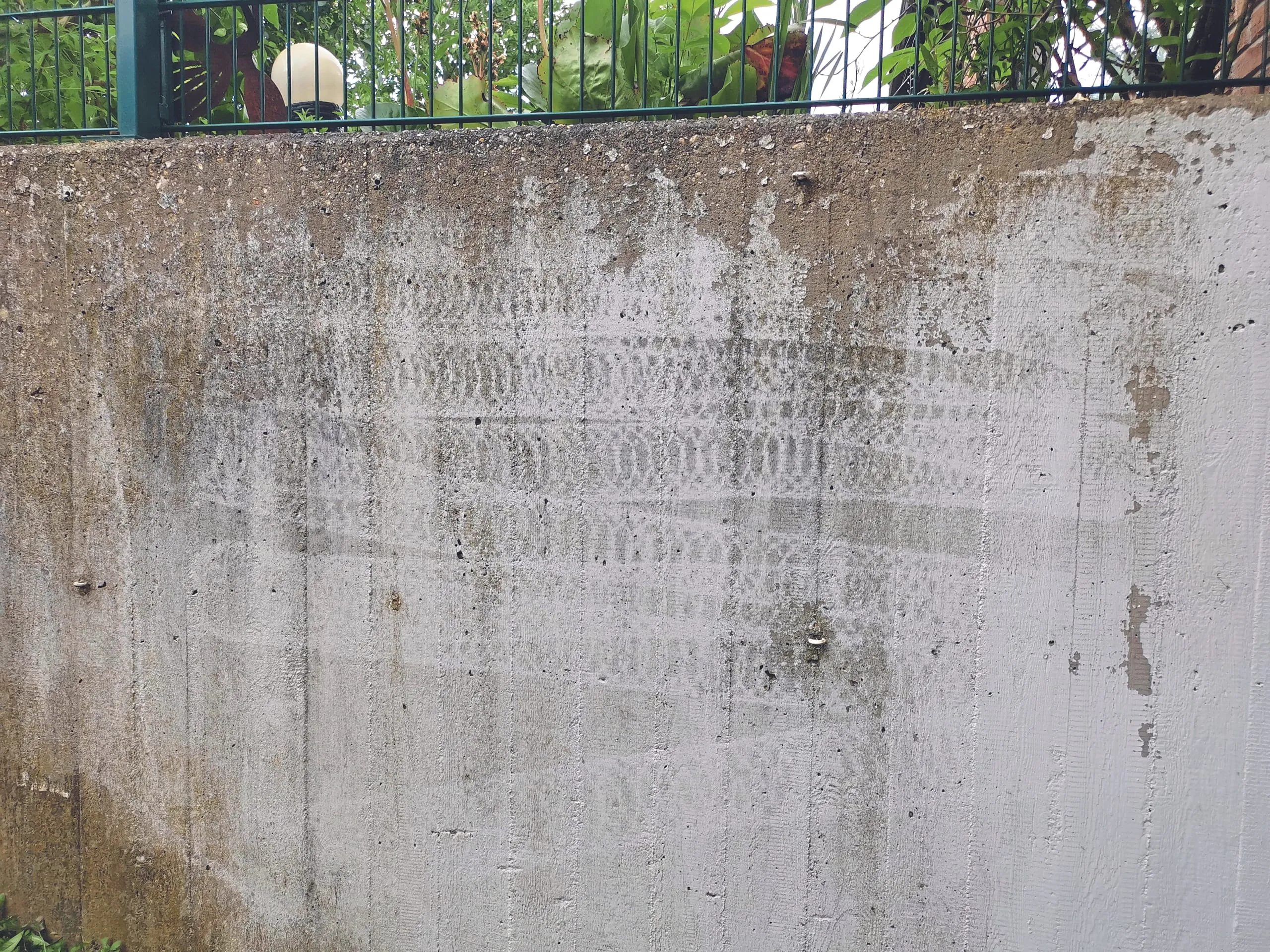 Im aktuellen Schadensfall wurde eine Mauer aus Sichtbeton, die vor unbekannter Zeit mit Farbe belegt worden war, mittels eines Hochdruckreinigers gereinigt. Leider wurde dabei nicht nur die Verschmutzung von der Oberfläche entfernt, sondern in Teilbereichen auch die noch vorhandene Farbe, sodass die Arbeiten von Auftraggeberseite eingestellt wurden.