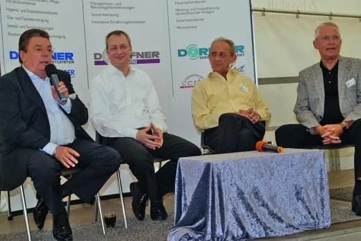 In sechs Jahrzehnten sind gemeinsam mit zahlreichen Geschäftspartnern viele wegweisende Ideen für die Branche entstanden. Die Bereitschaft von Lieferanten und Partnerfirmen, auch einmal neue Wege zu gehen, hat so manche Innovation erst möglich gemacht. Bei den langjährigen Geschäftspartnern bedankte sich Dorfner mit einem „Fest der Ideen“, bei dem man gemeinsame Meilensteine Revue passieren ließ. Zu Beginn lernten die Geschäftspartner einmal die Personen hinter den Kulissen kennen, aus Finanzbuchhaltung, Einkauf und Technik. Bisher hatte man sicherlich des Öfteren per Telefon, Mail oder Rechnung miteinander zu tun, aber nun konnten alle Beteiligten den Namen auch die Gesichter zuordnen. Ein Innovationendialog mit den langjährigen führenden Köpfen, die an vielen Neuentwicklungen mitgewirkt haben, erinnerte an besondere Momente in der Unternehmenshistorie. Und die „Dorfner-Veteranen“ wussten dazu manche amüsante Anekdote beizusteuern, denn natürlich lief vor allem in den Anfangsjahren nicht immer alles glatt. Es musste einiges an Lehrgeld bezahlt werden, wie zu hören war. Aber mit einer Menge Herzblut und engagierten Mitarbeitern gelang der Ausbau vom kleinen Handwerksbetrieb zur Dorfner Unternehmensgruppe mit derzeit mehr als 8.500 Mitarbeitern. Kabarettist Oliver Tissot hatte sich ebenfalls eingehend mit der Dorfner-Historie beschäftigt und seine ganz eigene witzig-ironische Sicht auf die Dinge mitgebracht - dem Publikum gefiel’s. Kulinarisch umsorgt wurden die Gäste von Dorfner menü, die eine köstliche Reise durch die internationale Küche anboten, um die Nationalitätenvielfalt der Dorfner-Mitarbeiter widerzuspiegeln.
