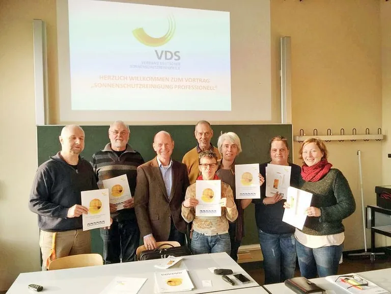 Im Rahmen einer Fortbildung für Berufsschullehrer an der Max-Taut- Schule in Berlin stand deshalb ein Fachvortrag über die professionelle Reinigung von Sonnenschutztechnik auf dem Programm – in Zusammenarbeit mit dem VDS-Verband Deutscher Sonnenschutzreiniger e.V.