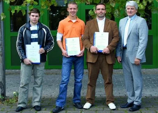 - Schulleiter, Oberstudiendirektor Dieter Kuhn und Günter Bogenrieder, stellvertretender Innungsobermeister und Lehrlingswart von Baden-Württemberg überreichten am 26. September an der Gewerblichen Schule Metzingen die Gesellenbriefe.