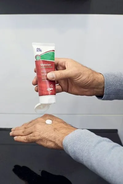 Der Schutz beginnt bereits vor der Arbeit. Für Gebäudereiniger entwickelte SC Johnson Professional den Hautschutz Stokoderm Aqua Pure. Diese Creme legt sich schützend um die Hände und hilft vor allem bei der Arbeit mit Wasser, Wasch- und Reinigungsmitteln und sogar mit aggressiven Mitteln. Die Hautschutzcreme sorgt dafür, dass die Stoffe gar nicht erst eindringen können. Gleichzeitig schützt die Creme die Hände auch in Handschuhen. Hier sorgt der natürliche Schweiß häufig für aufgeweichte Hände, die dadurch anfälliger für Hautkrankheiten werden. Der Hautschutz wirkt dem entgegen.