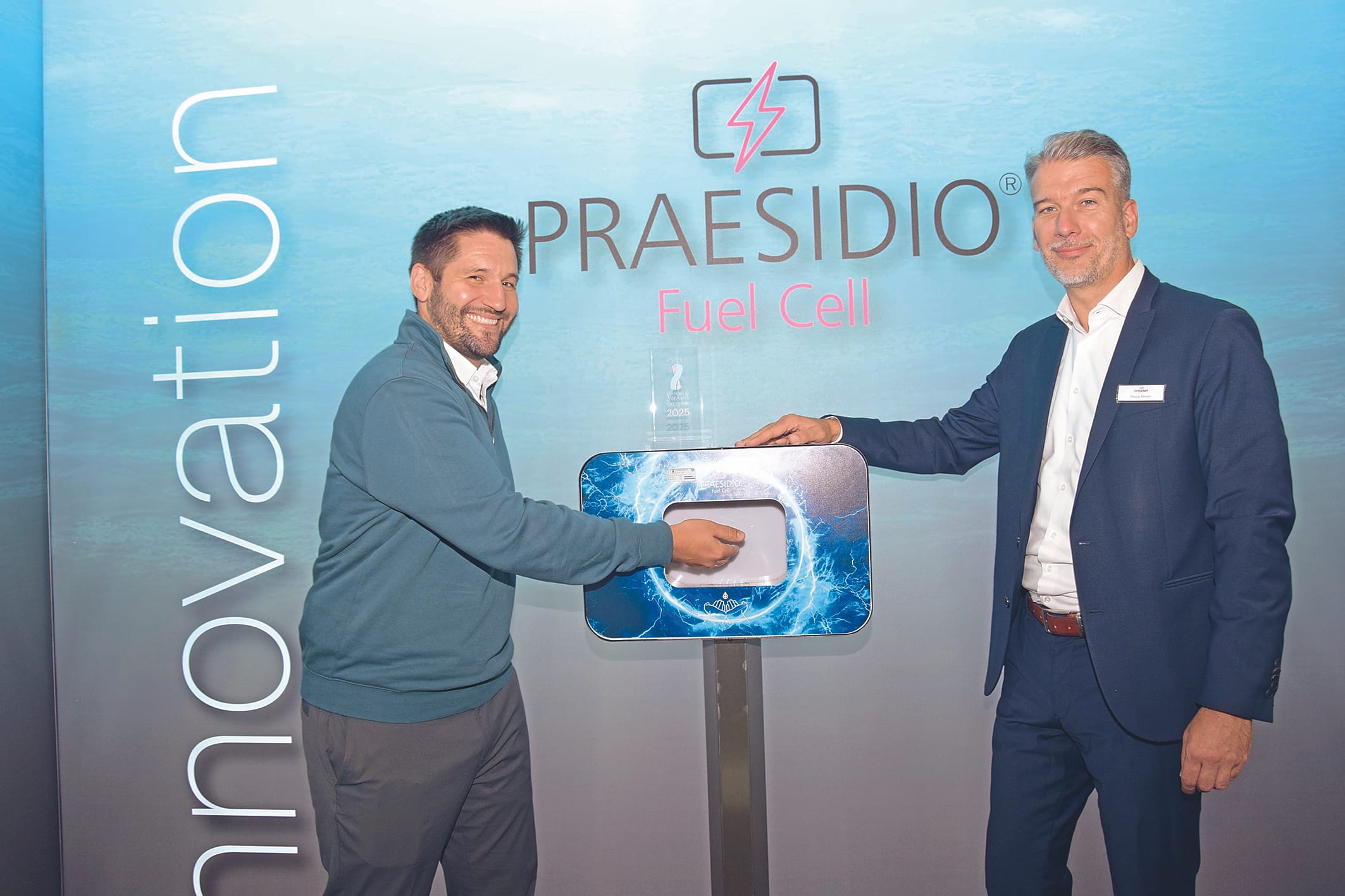 Ophardt: Ein Highlight war der Händedesinfektionsmittelspender Praesidio Fuel Cell, ausgezeichnet mit dem Purus Innovation Award 2025 in der Kategorie Waschraumhygiene. Angetrieben wird er von einer Brennstoffzelle.