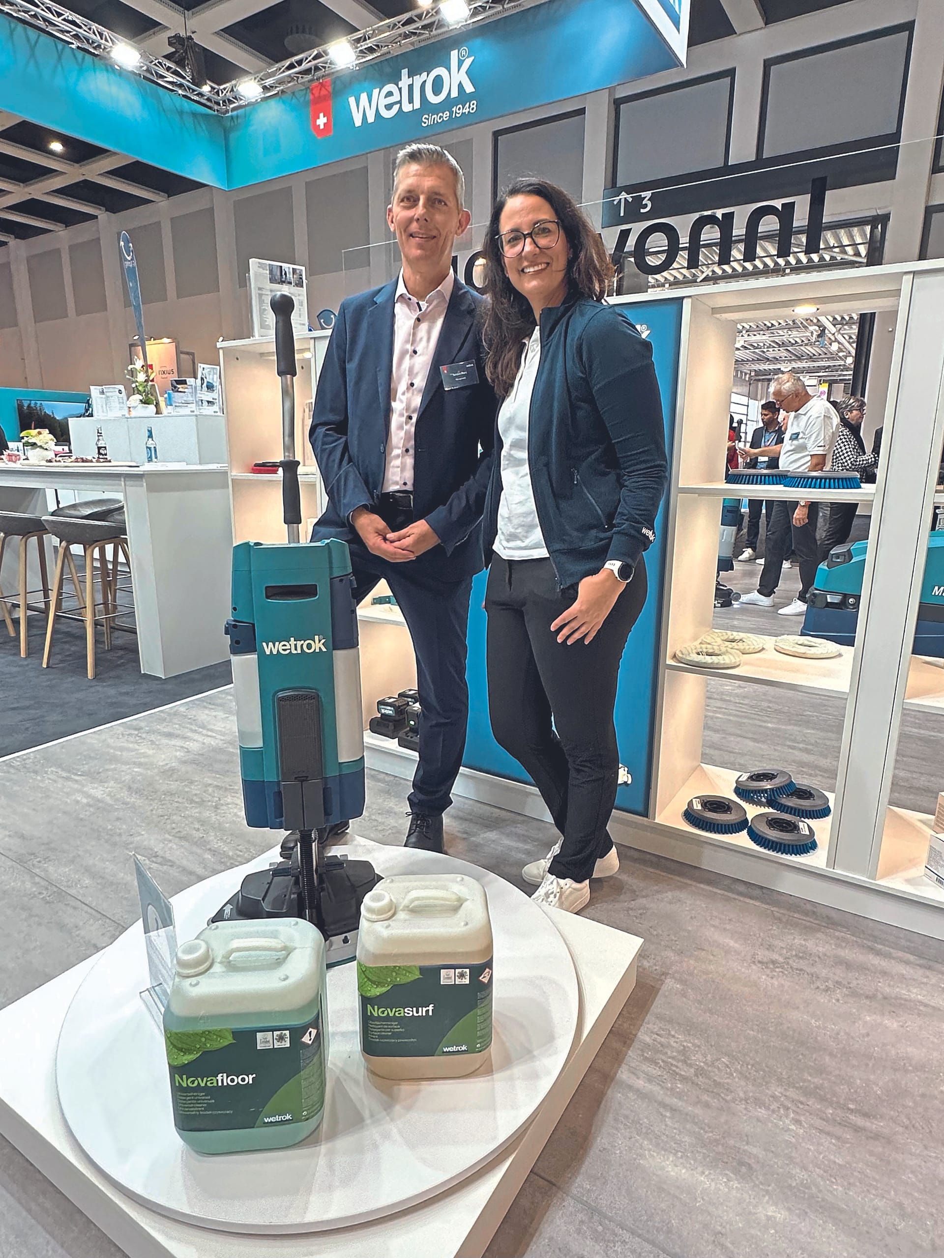 Als weitere Neuheit stellte Wetrok zur Messe die Novaline-Reinigungslinie für alle Anwendungsbereiche vor – von Allzweck- über Sanitär- bis hin zu Spezialreinigern. Die Rezepturen basieren auf Bio-Tensiden aus fermentierten Reststoffen und verzichten vollständig auf Erd- und Palmöl. Alle Produkte seien biologisch abbaubar, hautverträglich und würden höchste Umweltstandards erfüllen. Die Novaline-Kanister sind zudem aus 50 Prozent recyceltem Kunststoff hergestellt und reduzieren damit die CO2-Emission laut Wetrok um 21 Prozent. Leere Kanister werden zurückgenommen und wiederum fachgerecht recycelt.