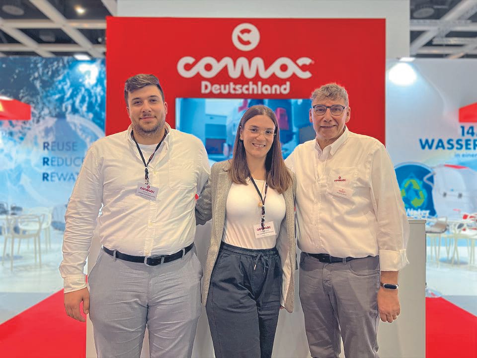 Die neue Comac Deutschland GmbH hat ihren Sitz in Gersthofen bei Augsburg und besteht aktuell aus einem Team von sechs Fachkräften aus dem kaufmännischen Backoffice und dem technischen Bereich. Vertreten waren auf der Messe (v.l.): Simon Messerschmid (Techniker), Noemi Seminara (Backoffice Vertrieb) und Markus Kraus (Koordinator Kundendienst). Da das Engagement von Comac in Deutschland auf Wachstum ausgelegt sei, werde das Team schrittweise mit neuen Mitarbeitenden und Kompetenzen erweitert. Giancarlo Ruffo, Präsident von Comac und zugleich Geschäftsführer der ­Comac Deutschland GmbH, sagt hierzu: "Die Eröffnung von ­Comac Deutschland markiert einen entscheidenden Schritt auf dem Internationalisierungspfad der Gruppe. Deutschland ist ein reifer Markt mit anspruchsvollen und gut informierten Kunden. Unsere Mission ist es, an ihrer Seite zu stehen – mit leistungsstarken, innovativen Maschinen und einem lokalen Service, der Schnelligkeit, Zuverlässigkeit und Fachkompetenz gewährleistet.“ In diesem Kontext verweist Comac auch auf die Unterstützung der Partner Broda, Behrend, Petzold, Wlodarczak und Geiger, die die Einführung der neuen Niederlassung mit begleitet sowie die Verbindung zwischen Comac und dem deutschen Markt weiter gestärkt hätten. Gemeinsam mit ihnen und neuen Partnern ­möchte Comac ein Service- und Vertriebsnetzwerk aufbauen, das alle Regionen Deutschlands abdeckt, um sowohl lokale als auch Großkunden effektiver bedienen zu können.