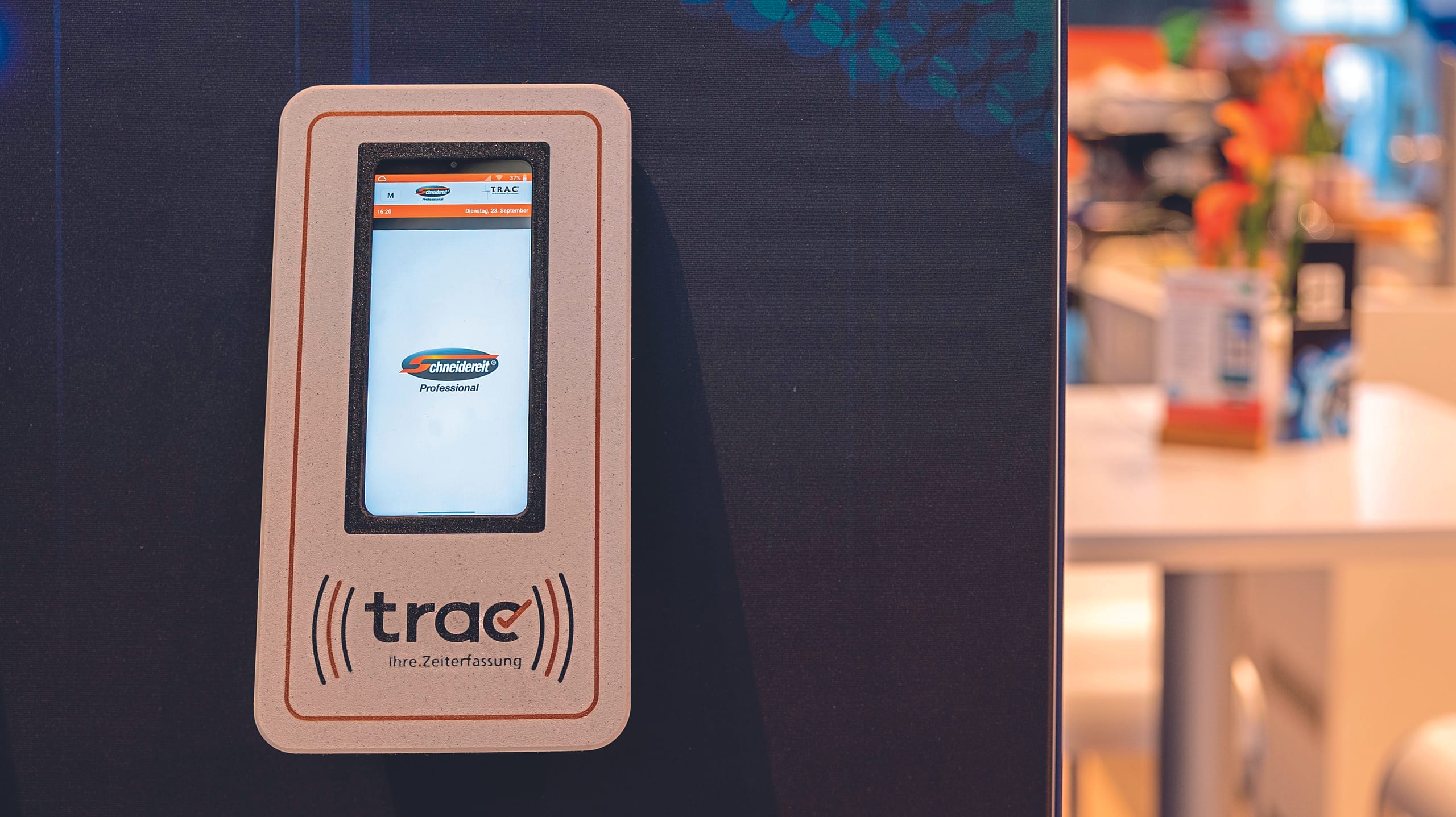 Schneidereit Professional: Das Unternehmen aus Solingen zeigte seine neuesten Entwicklungen aus der Zeiterfassung und Spültechnik. Im Bereich der Personaleinsatzplanung und digitalen Zeiterfassung Trac präsentierte Schneidereit Professional eine neue Generation seines Terminals (Bild). Erstmals kommt zur biometrischen Verifikation der Zeiterfassungsbuchungen eine Gesichtserkennung anstelle von Fingerabdruckscannern zum Einsatz. Das soll Manipulation bei der An- und Abmeldung verhindern und auch die Zuverlässigkeit bei der Bedienung erhöhen. Laut Hersteller arbeitet das Terminal durch die neue Technologie präziser, ist weniger anfällig für Verschmutzungen und Umwelteinflüsse und bietet so eine zuverlässige Lösung für moderne ­Arbeitsumgebungen.