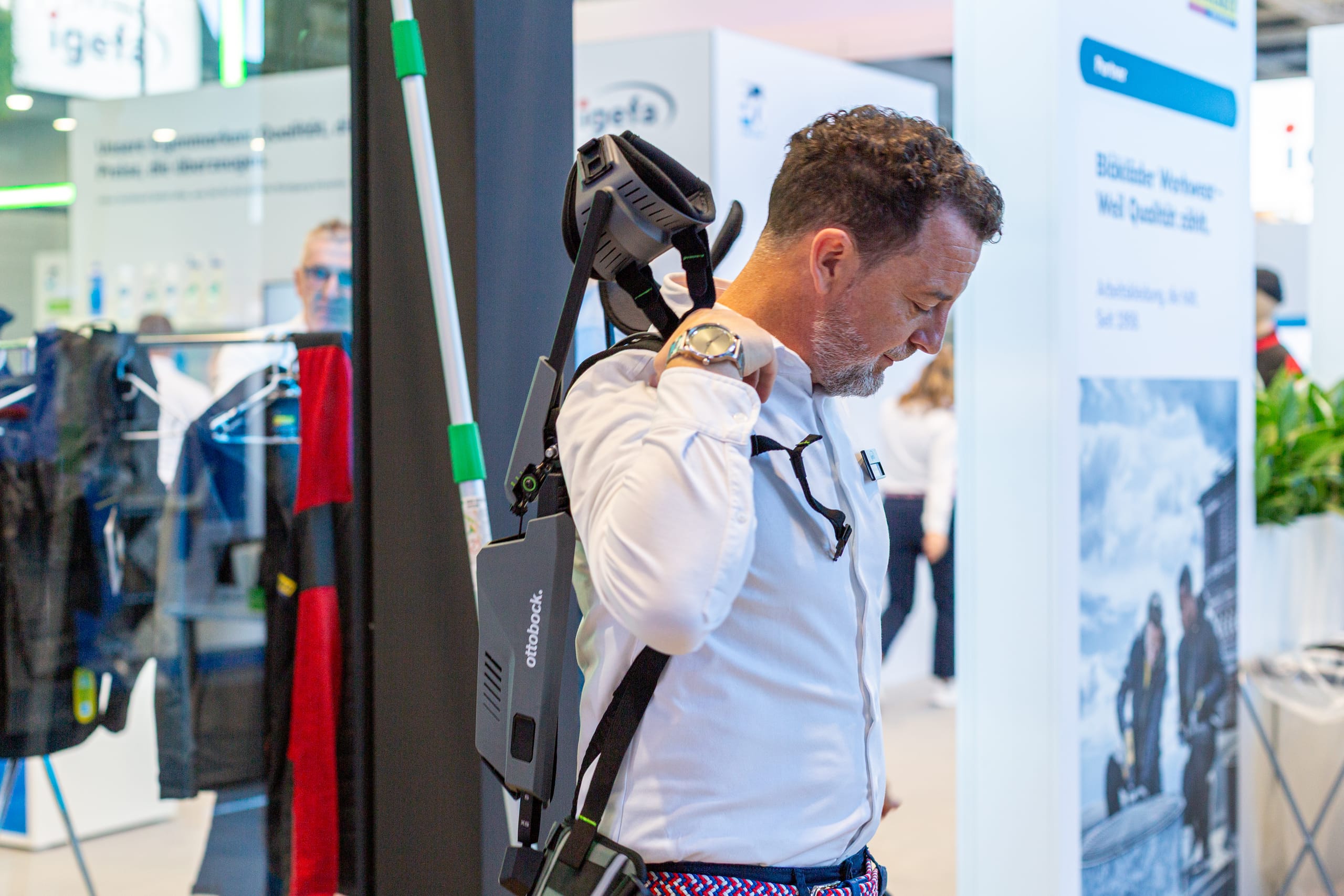 Igefa: Erlebbare Innovationen beziehungsweise Technologien und Services, die den Arbeitsalltag der Gebäudereiniger erleichtern und Auswirkungen auf die Umwelt reduzieren sollen, standen im Fokus des diesjährigen CMS-Auftrittes der Igefa. Unter anderem konnten die Besucher am Stand live erleben, wie Robotik den Reinigungsalltag unterstützt – von autonomen Maschinen bis hin zu intelligent vernetzten Systemen, die Personalressourcen entlasten und Prozesse optimieren. Nicht zuletzt demonstrierte der Fachgroßhändler in Berlin den Einsatz von Exoskeletten, die körperlich anspruchsvolle Tätigkeiten erleichtern und so zum Erhalt der Gesundheit der Mitarbeitenden im Gebäudereiniger-Handwerk beitragen können, und stellte zudem eine spezielle Kühlkleidung vor, die bei hohen Temperaturen für Sicherheit und Wohlbefinden sorgen soll.