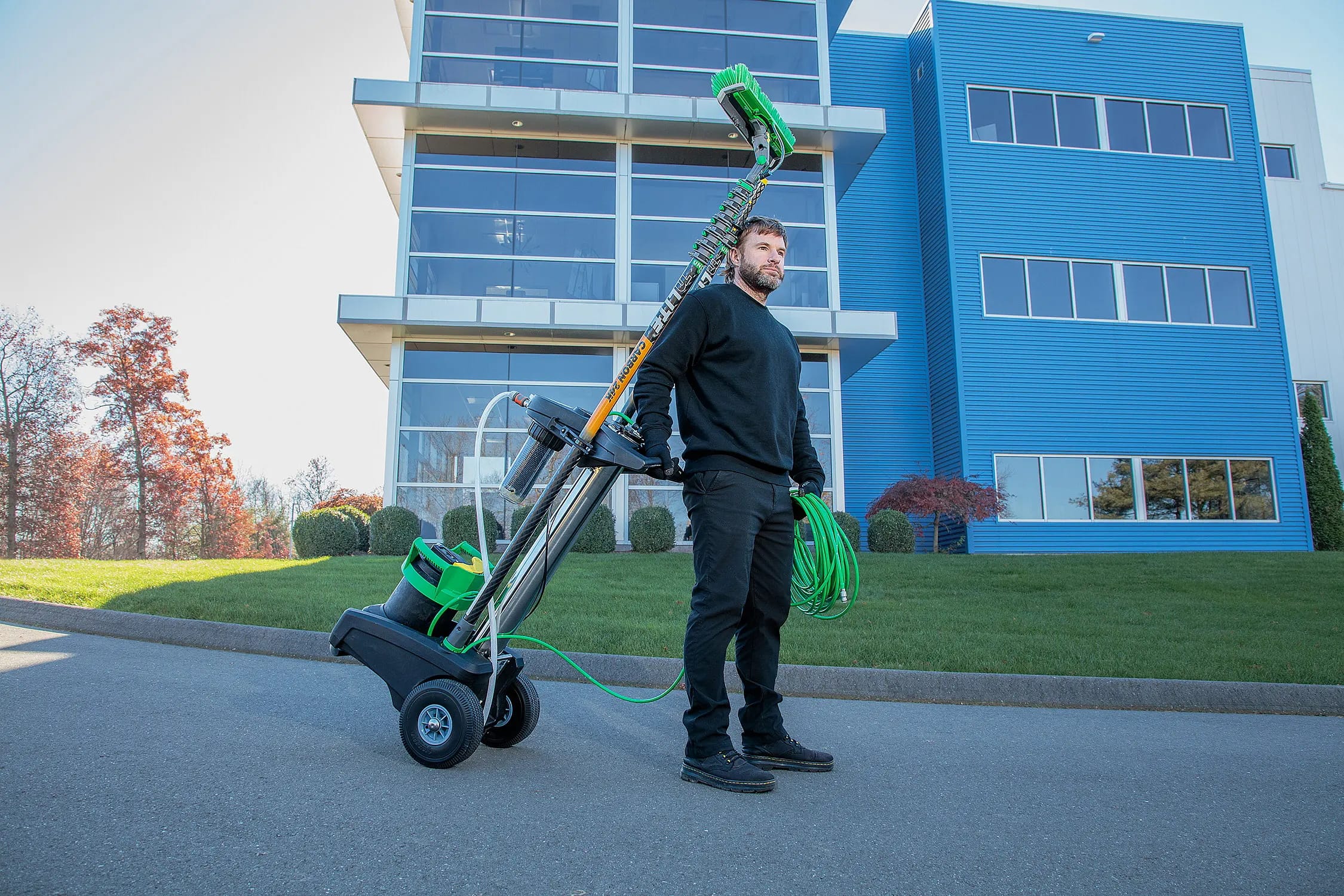 Kategorie Arbeitskräfte und Ergonomie: Ebenfalls nominiert ist ein ergonomisches Stützsystem für die Glasreinigung mit Teleskopstange (i-suit 2.0) von i-Team …