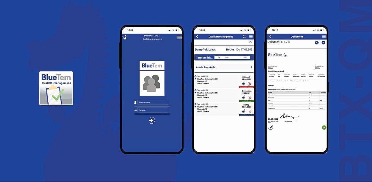Mit BTX-QM bietet BlueTem die digitale Variante von Qualitätsprotokollen. Egal, ob festes Intervall oder Zufallsprinzip, die Protokolle werden binnen Sekunden an den gewünschten Mitarbeiter übertragen. Der Nutzer profitiert von einer unmittelbaren Datenkommunikation und einer zettelfreien Bearbeitung. Man kann dabei die benötigten Bewertungsstufen frei bestimmen, je nach variierenden Anforderungen durch Kunden, Objekte und Reviere. Nach erfolgter Prüfung kann aus der App heraus das unterschriebene Protokoll an das System übermittelt werden. Die Ergebnisse der Qualitätsbewertungen werden protokolliert und können jederzeit im eingesetzten Softwaremodul abgerufen werden. Die geleistete Reinigungsqualität kann mittels detaillierter Auswertungen der Qualitätsberichte analysiert werden. Ein abweichendes Leistungsniveau wird gezielt erkannt und kann abschließend korrigiert werden. Dies trägt zur Kundenzufriedenheit bei und ermöglicht auch, den gewünschten Qualitätsstandard konstant aufrechtzuerhalten.