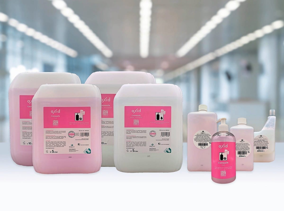 Bei den Nitrilhandschuhen Aximed pro von Highclean gibt es ergänzend zu den Modellen in Blau nun auch Varianten in Weiß und Schwarz. Die neuen Farbvarianten sind ebenfalls puderfrei, lebensmittelecht und ermöglichen dank mikrotexturierter Fingerspitzen eine gute Griffigkeit im Umgang mit trockenen und feuchten Gegenständen. Die Handschuhe sind besonders strapazierfähig und reduzieren so das Verletzungsrisiko. Die Cremeseife Axid rose´ ist dank verbesserter Rezeptur jetzt hautschonender. Sie ist seifen- und alkalifrei, halalkonform und vegan. Eine besonders wirtschaftliche Lösung ist das neue Axid-Schaumseifenkonzentrat. Durch die Verwendung im Schaumspender lässt sich der Verbrauch mit dem Konzentrat um 30 Prozent senken und man muss dank Feuchtigkeitsregulatoren auf Aloe-Vera-Basis nicht auf die Hautpflege verzichten.