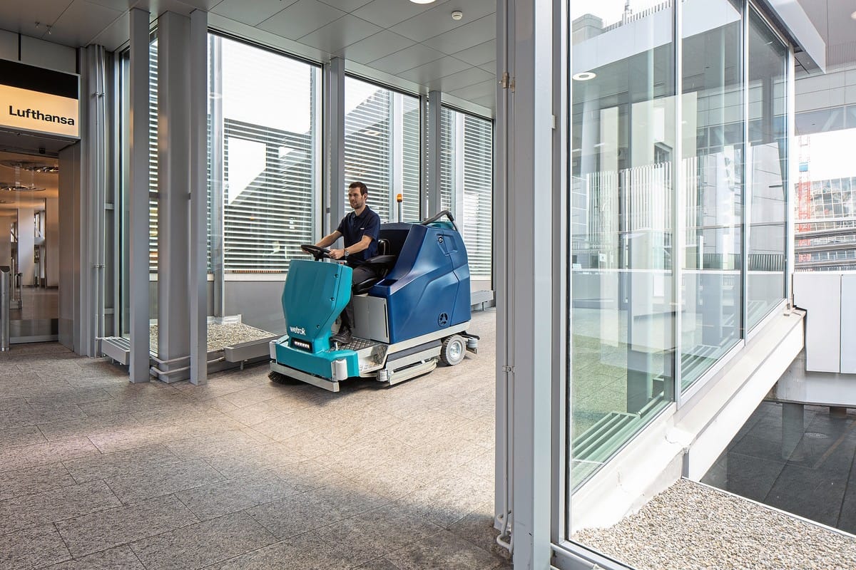 Für die Bodenreinigung in Bahnhofshallen, Logistikzentren oder Parkhäusern bietet Wetrok jetzt die Aufsitz-Scheuersaugmaschine Drivematic Deluxe. Sie verfügt über einen 200-Liter-­Frischwassertank, ihre Einsatzzeit wird mit vier Stunden angegeben, bei einer Geschwindigkeit von bis zu neun Stunden­kilometern. Dabei werden Steigungen von bis zu 20 Prozent bewältigt. Um den losen Schmutz kümmert sich ein optional ­erhältlicher Seitenbesen, während die Sprühpistole und die ­optional erhältliche Handabsaugung maschinell nicht erreichbare Stellen ­zugänglich machen. Für Sicherheit sorgen ein Sicherheitslicht und eine LED-Frontleuchte. Wetroks Sortiment an Aufsitz-Scheuer­saugern umfasst nun drei Maschinen für verschiedene Einsatzbereiche: Drivematic Delight (enge Bereiche), Drivematic Delarge (größere Flächen) und Drivematic Deluxe (große Areale).