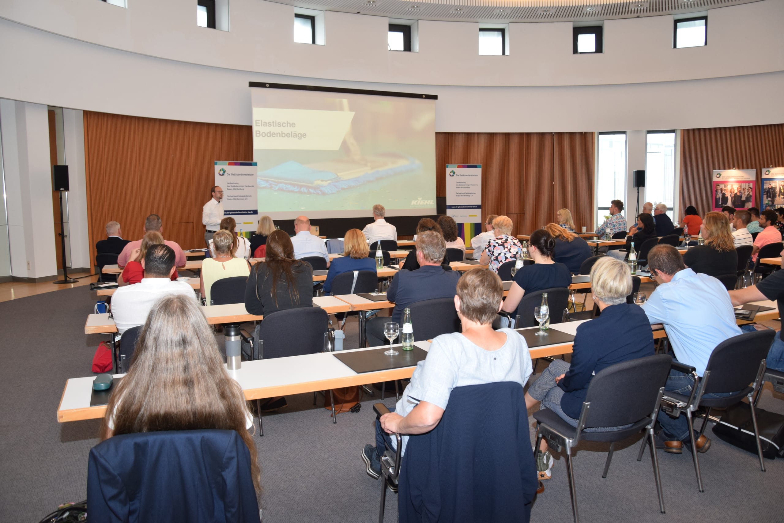 © rationell reinigenFester Bestandteil des Verbandstags sind Fachvorträge, die als Weiterbildungen im Rahmen des Qualitätsverbunds Gebäudedienste anerkannt sind. Bernd Stein (Bild), Anwendungstechniker beim Reinigungschemiehersteller Kiehl, erklärte seinen Zuhörern im Ulmer Hotel Maritim, was bei der "Reinigung und Sanierung von Parkett und elastischen Bodenbelägen" zu beachten ist. -