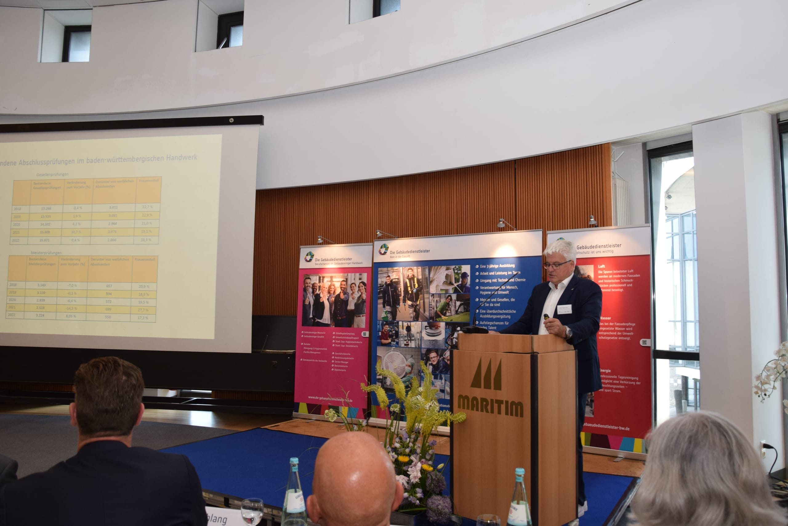 © rationell reinigenWolfram Schlegel, Geschäftsführer der Landesinnung Baden-Württemberg, ließ in seinem Bericht das vergangene Jahr Revue passieren. Im Gebäudereiniger-Handwerk herrsche durchaus Optimismus. Die zunehmende Personalknappheit belaste allerdings die Betriebe. -