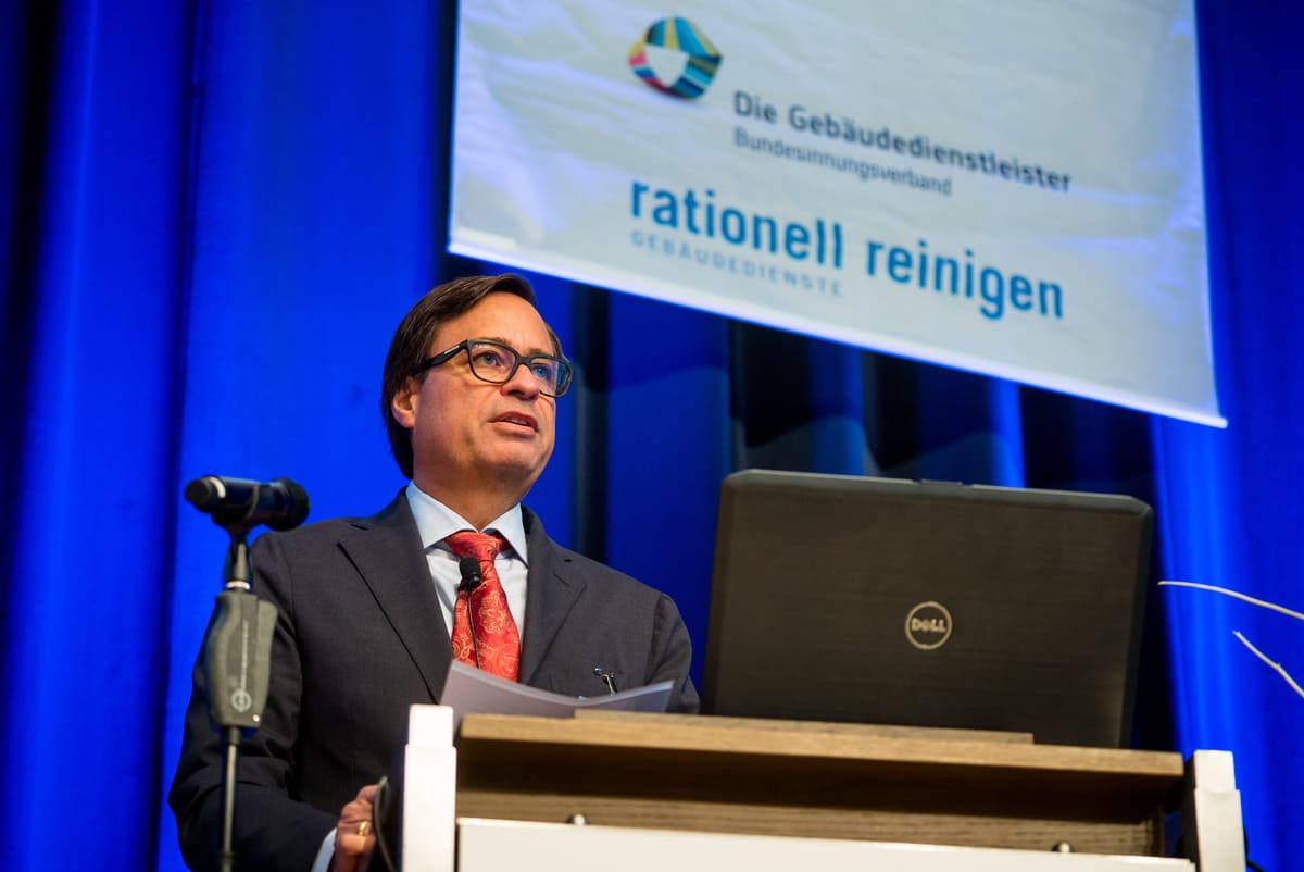 © André Wirsig/rationell reinigen„Wir müssen uns rechtzeitig mit den Themen der Zukunft auseinandersetzen", betonte Bundesinnungsmeister Thomas Dietrich in seiner Eröffnungsansprache. -