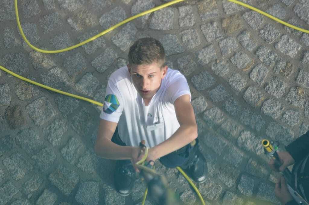 Christoph Rakowski ist der Sieger des Bundesleistungswettbewerbs des Gebäudereiniger-Handwerks 2018 - er überzeugte die Jury auch am Reinwasser-Gerät. - © Stefan Weinzierl /rationell reinigen
