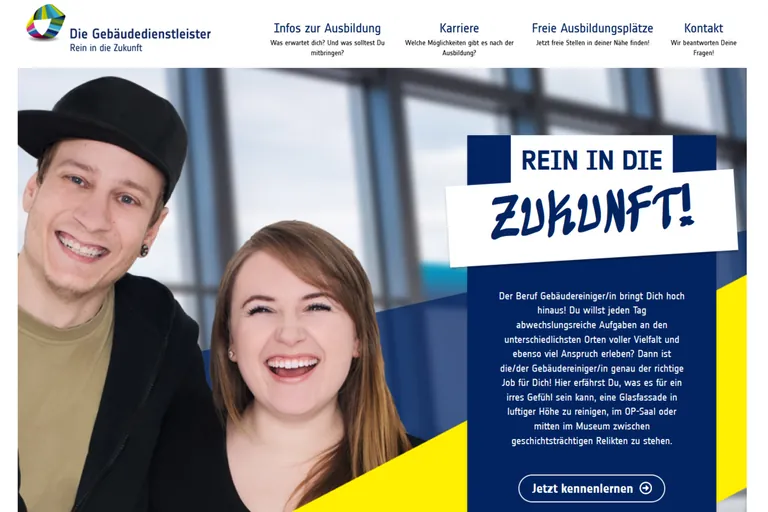 Herzstück der Aktivitäten des Bundesinnungsverbands des Gebäudereiniger-Handwerks (BIV) ist die neu gelaunchte Azubiseite reinindiezukunft.de. Das Ziel: Mehr junge Menschen für eine vielfältige und chancenreiche Ausbildung im Gebäudereiniger-Handwerk zu gewinnen. Im Zentrum der Webseite steht ein neuer Lehrstellenradar, der alle BIV-Mitgliedsunternehmen mit offenen Ausbildungsstellen regional und aktualisiert auflistet.
