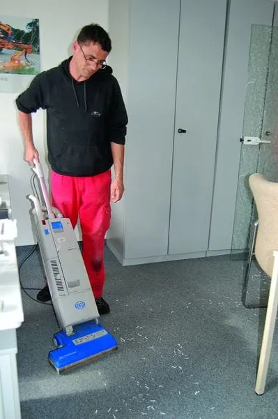 Darüber hinaus ermögliche die unmittelbare Kommunikation oft schnelleres Reagieren. Es gibt noch weitere Argumente für den Einsatz der Reinigungskräfte während der Bürozeiten, mit denen Klaus Höschel bei seinen Auftraggebern punktet: Bei Kunstlicht nur schwer erkennbare Verunreinigungen werden leichter entdeckt, was wiederum zu einem besseren Reinigungsergebnis führt. Ganz nebenbei spart der Kunde Kosten für die Beleuchtung, die insbesondere im Winterhalbjahr nach Büroschluss meistens notwendig ist. Für Nachteinsätze in Büroräumen, die bis in die späten Abendstunden genutzt werden, müssen Schichtzuschläge berechnet werden, die bei der Tagreinigung entfallen.