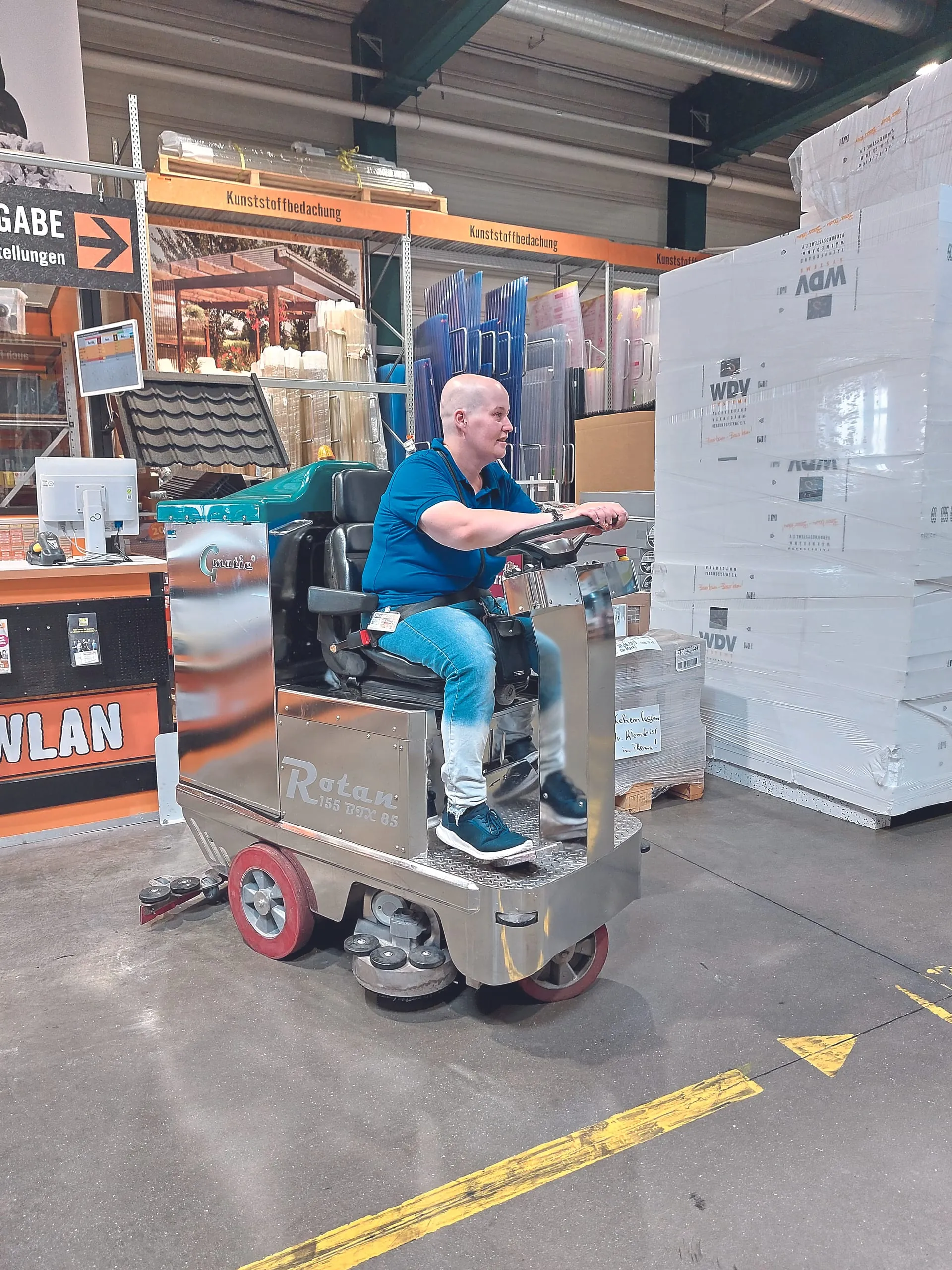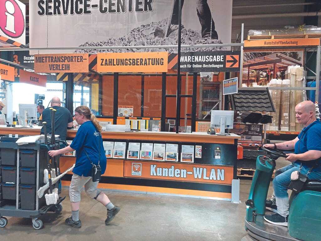 Vor gut einem Jahr stellte Cornel Klaßen der Hornbach-Kette seine Pläne vor. Im April 2023 startete "Integral Reinigen": Anja, Kerstin und Diana bekamen im Rahmen eines Praktikums die Chance, sich einfach mal in dem für sie völlig neuen Arbeitsfeld Gebäudereinigung auszuprobieren, ganz ohne Zwang. Und sie erledigten ihre Aufgaben nicht nur voller Elan, sondern mit Begeisterung. Die drei jungen Frauen machten ihren Job so gut, dass ihr Arbeitsbereich schnell ausgeweitet wurde. Seit 1. Juli sind sie quasi "übernommen", das heißt: aus ihren Praktika wurden sogenannte betriebsintegrierte Arbeitsplätze (BiAP). Inzwischen reinigen sie täglich eigenverantwortlich 90 % der Baumarktfläche. Dienstleister Vebego übernimmt den Sanitärbereich und Räume in der oberen Etage.