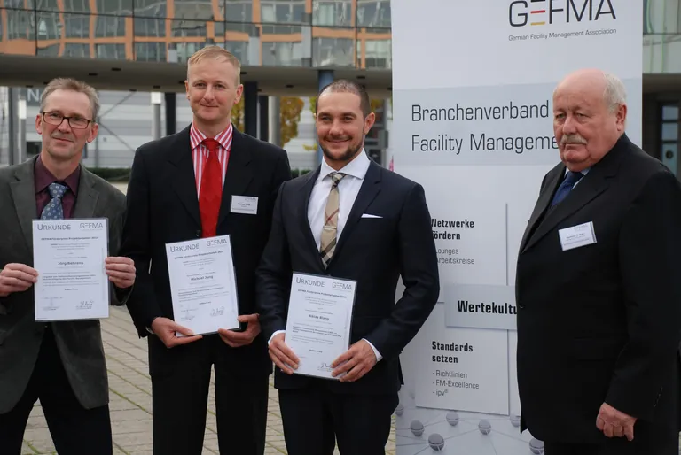Im Rahmen der Mitgliederversammlung wurden die mit insgesamt 3.500 Euro dotierten Förderpreise für herausragende Projektarbeiten in der Gefma-Fachwirtausbildung verliehen. Jörg Behrens erhielt für sein Prozesskostenmodell, das eine betriebswirtschaftliche Bewertung von Gesundheitsdienstleistungen unter Facility-Management-Aspekten erlaubt, die höchste Auszeichnung. Behrens verfasste seine Arbeit im Rahmen des Fachwirtlehrgangs bei Protektor und überzeugte die Jury unter Vorsitz von Prof. Dr. Wolfram Stephan, Technische Hochschule Nürnberg.