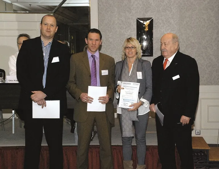 Bei der Vergabe auf der Gefma-Mitgliederversamlung in Hamburg zeichnete Vorstand Hartmut Zehrer insgesamt drei Absolventen von Lehrgängen Gefma-zertifizierter Weiterbildungsträger aus.