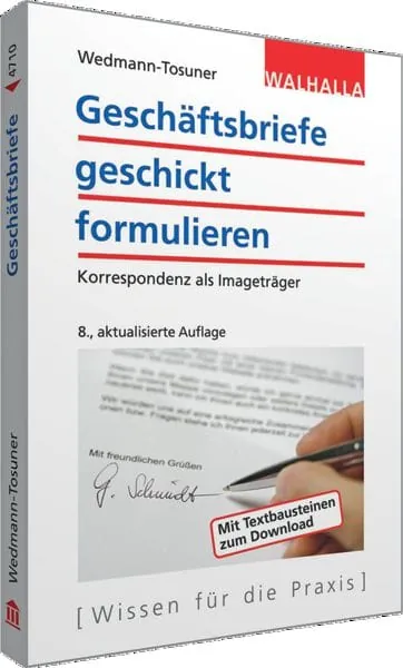 Angebotsschreiben, Kunden vertrösten, Geburtstagsglückwünsche, Protokolle, Reklamationen, Messekommunikation: Die Korrespondenz ist die Vistenkarte eines Unternehmens. Auch in der Hektik des Alltags soll sie rasch, klar, sachlich und angemessen erledigt werden. Und einen guten Eindruck machen. Der Ratgeber hilft, die geschäftliche Korrespondenz rationell zu erledigen, ohne Takt und Diplomatie zu vernachlässigen. Dabei wird klar, dass guter kaufmännischer Schriftverkehr – kundenorientiert formuliert – gleichzeitg auch das Image befördert. Die Autorin öffnet die Augen für veraltete Formulierungen und gibt Beispiele für klare, zeitgemäße Korrespondenz. Die aufgeführten Wortfelder helfen, Protokolle schnell zu erstellen. Die Neuauflage enthält zahlreiche Praxistipps, Textbausteine und Musterbriefe zum Download.