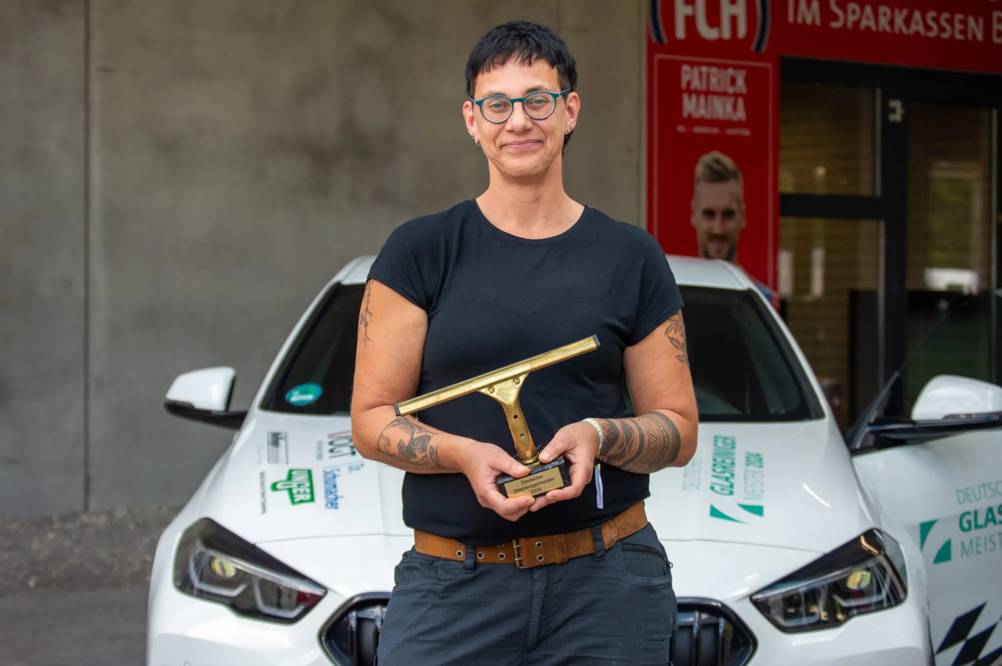 Nach knapp vier Stunden beziehungsweise 34 Runden – je drei Teilnehmer traten immer gleichzeitig gegeneinander an – endete der Wettbewerb schließlich mit einer kleinen Überraschung: Schnellster Glasreiniger war nicht wie von vielen Anwesenden erwartet der Titelverteidiger Michael Gallinger (Gebäudereinigung Putzmunter) aus Regensburg, der bereits die beiden vorangegangenen Meisterschaften in den Jahren 2014 und 2009 gewonnen hatte, sondern dessen Ehefrau Daniela mit einer Siegerzeit von 42,5 Sekunden. Die Siegprämie – eine einjährige Nutzung eines neuen 2er-BMW Grand Coupé, das der Sponsor Mulfinger Automobile zur Verfügung stellte – bleibt damit immerhin in der Familie. Auf Platz 3 hinter Michael Gallinger (43,5 Sekunden) landete Mohammed Halloum mit einer Zeit von 44,2 Sekunden; auch er ist ein Mitarbeiter des Gebäudereinigungsbetriebs Putzmunter von Michael Gallinger.