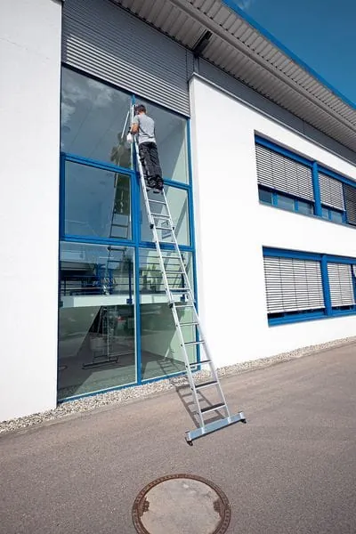 Die Anforderungen für Leitern sind in der TRBS 2121 in Teil 2 („Gefährdung von Beschäftigten durch Absturz bei der Verwendung von Leitern“) festgelegt. Die überarbeitete TRBS 2121, veröffentlicht im Dezember 2018 und gültig seit Januar 2019, hat für sehr viel Unruhe unter Glasreinigern gesorgt, weil sich daraus doch einige wesentliche neue Vorschriften in der Beschaffung und im Umgang mit Glasreinigerleitern ergeben haben. Außerdem werden nach DIN EN 131 Leitern für den privaten und gewerblichen Gebrauch unterschieden. Leitern für den gewerblichen Gebrauch sind entsprechend gekennzeichnet. Ihre Bauart ist für den Einsatz auf Baustellen stabiler und alle Anlegeleitern über drei Meter müssen über e ine Traverse (Fußverbreiterung) verfügen.