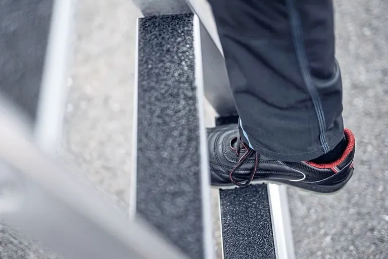 Stufen von gewerblichen Leitern sind acht Zentimeter breit, um ein ergonomisch sicheres Stehen zu ermöglichen. Jetzt soll auf Betreiben der Leiterhersteller über eine Neufassung der Leiternorm DIN EN 131 die vorgeschriebene Stufenbreite von acht auf 4,5 Zentimeter reduziert werden. Dadurch würden die Leitern leichter und handlicher werden.