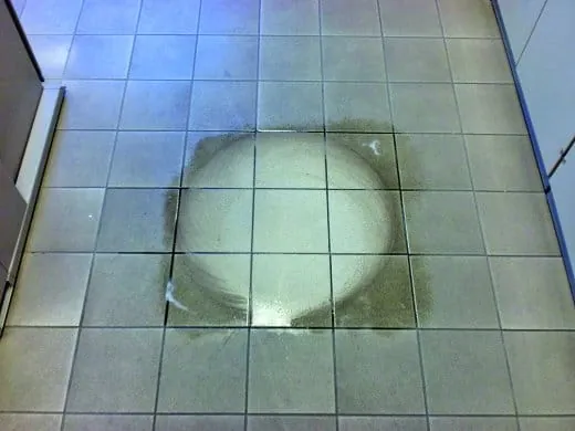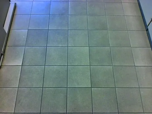 Vergraute Feinsteinzeugfliesen in einem Trockenmörtelwerk Grundreinigung ohne Wasser?