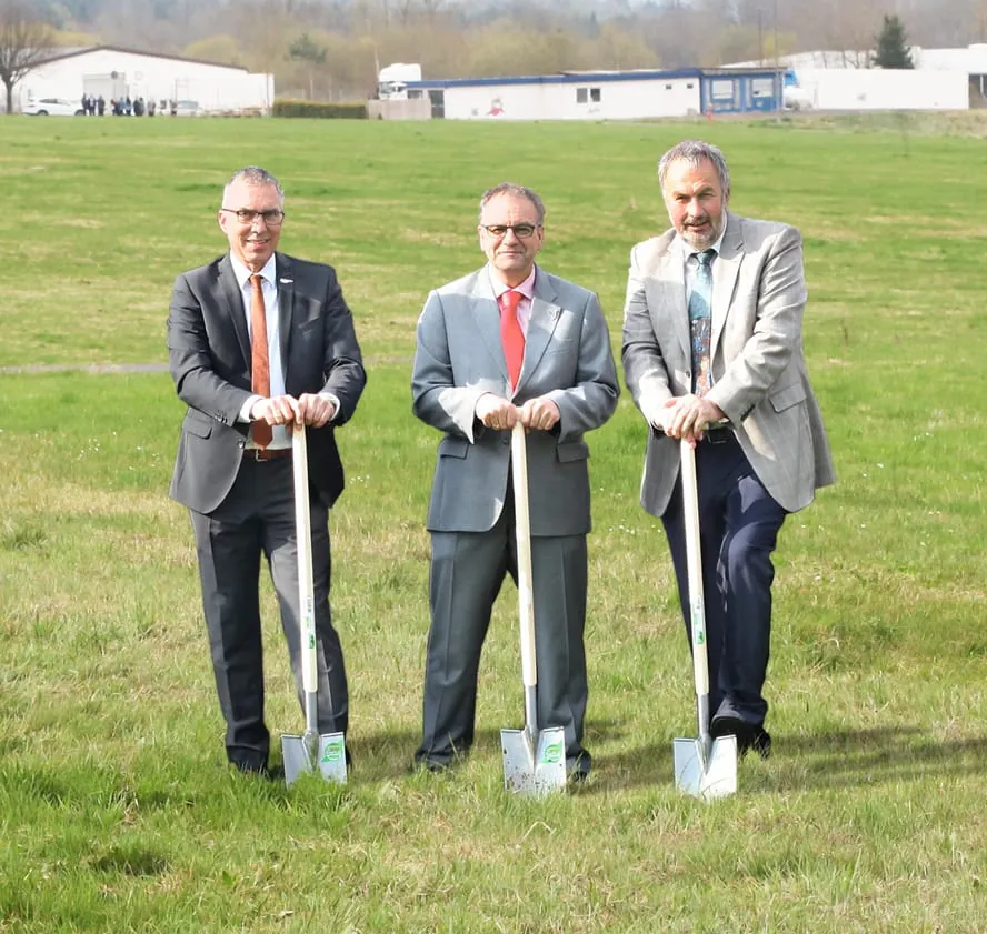 Erster Spatenstich für das neue GVS-Zentrallager in Friedewald: Prokurist Matthias Ikas, Vorstand Klaus Agsteiner und Vorstand Joachim Homberger (v.li.).