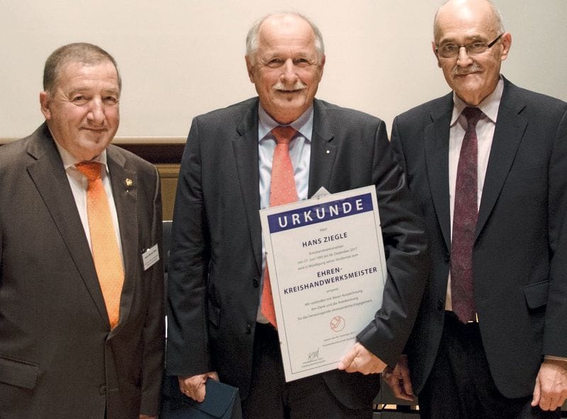 Hans Ziegle (Ziegle Dienstleistungsgruppe, Ludwigshafen), bislang Kreishandwerksmeister der Kreishandwerkerschaft Vorderpfalz (Ludwigshafen), ist zum Ehrenkreishandwerksmeister ernannt worden. Der 64-Jährige hat sich seit 1995 im höchsten Ehrenamt der Kreishandwerkerschaft engagiert. Sein Nachfolger ist der Metzgermeister Heinz-Werner Süss, bislang stellvertretender Kreishandwerksmeister. Zum neuen Stellvertreter wurde bei der Mitgliederversammlung der Kreishandwerkerschaft der Glasermeister Christian Hanemann gewählt.