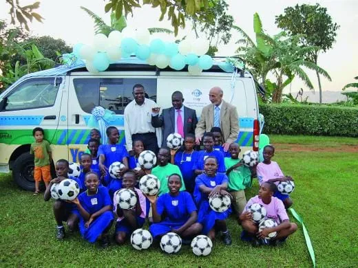 Hartmut Frensel (hinten rechts) hielt sein Versprechen: Er konnte in Uganda einen neuen Youth Truck übergeben.