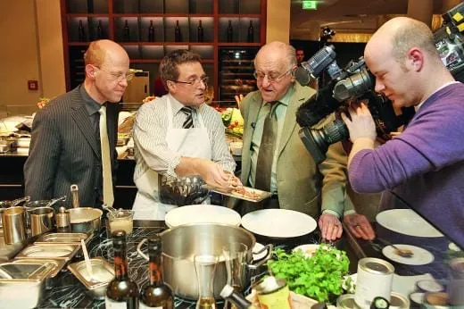 Kochen für Freunde: Restaurantkritiker Heinz Holtgrefe und TV-Koch Alfred Biolek (Mitte) präsentierten den Gästen ihr Menü.