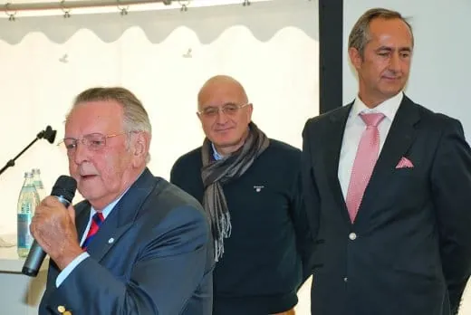 Das Innungsgebäude trägt nun seinen Namen: Franz Reitmeir. Hinter ihm die Geschäftführer Johannes Bungart (BIV) und Michael Zwisler.