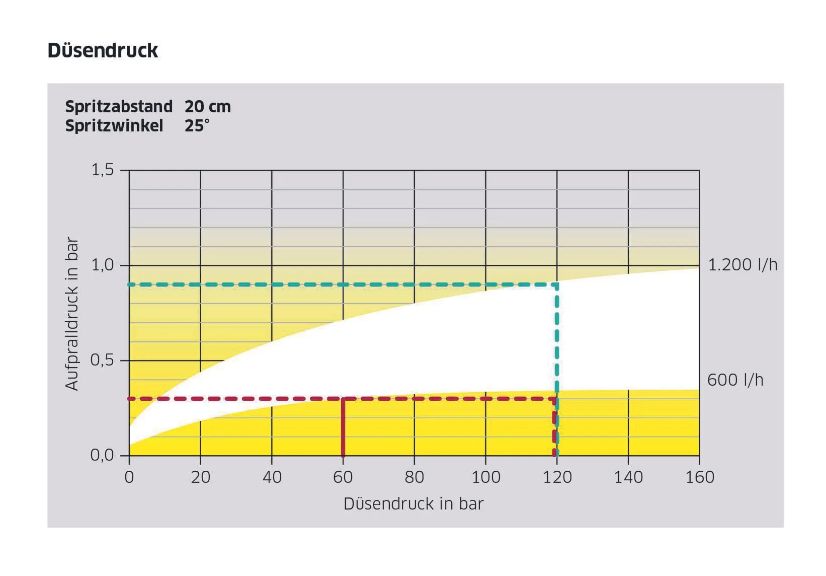 In beiden Fällen sollte eine Flachstrahldüse mit einem Winkel von 25 bis 40 Grad und einem Abstand zur Oberfläche von 20 Zentimetern verwendet werden. Der Aufpralldruck auf der Fassade liegt je nach gewählten Einstellungen zwischen 0,5 und 1 Bar (siehe Grafik). Um die Abrasivität zusätzlich zu verringern, kann die Wassermenge um bis zu 40 Prozent reduziert oder ein größerer Düsendurchmesser gewählt werden.