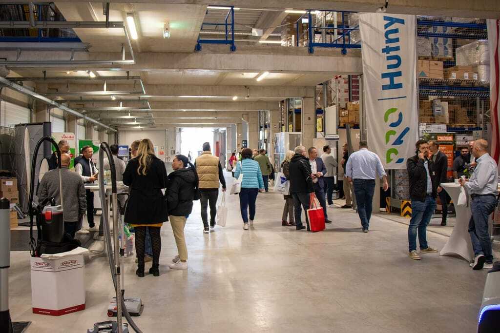 Am Tag nach der offiziellen Eröffnungsfeier fand eine Hausmesse statt. Dabei war Gelegenheit, die Räumlichkeiten und Dienstleistungen des Unternehmens kennenzulernen. Mehr als 50 Lieferanten präsentierten Innovationen aus dem jeweiligen Sortiment. Die Themen Nachhaltigkeit, Digitalisierung und Robotik standen dabei im Fokus. Hutny zeigte zudem verschiedene digitale Lösungen zur Prozess- und Kostenoptimierung.