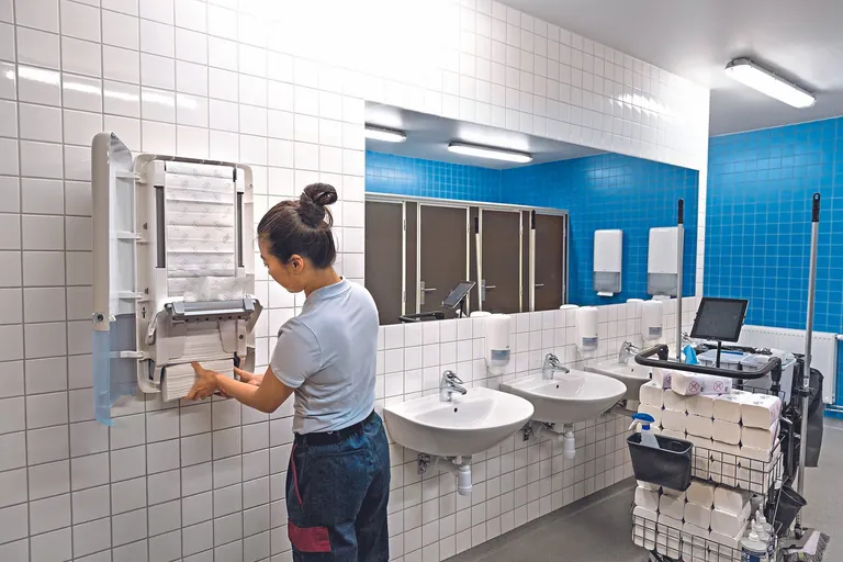 Die Anforderungen an Hygienelösungen können in Sanitär- und Waschräumen sehr unterschiedlich sein. Essenziell in jeder Art von Waschraum ist jedoch die lückenlose Ausstattung mit Verbrauchsmaterialien. Um hygienisches Fehlverhalten zu vermeiden und die Voraussetzungen dafür zu schaffen, dass die Sanitärräume unter ökonomischen, ökologischen und nachhaltigen Kriterien bewirtschaftet werden, gilt es eine auf den jeweiligen Bedarf abgestimmte Sanitärraumausstattung bereitzustellen – etwa Spender mit hohem Fassungsvermögen in stark frequentierten Waschräumen oder Seifenspender mit Armhebel für ein besonders hohes Maß an Hygiene. Ist die Mengenabgabe festgelegt und gleichbleibend, kann dies den Seifenverbrauch um bis zu 50 Prozent reduzieren, wodurch weniger Nachfüllungen erforderlich sind und mehr Seife zur Verfügung steht. Damit die Sauberkeits- und Hygienestandards in Waschräumen tagtäglich gewährleistet sind, ist es außerdem wesentlich, dass sich die Spender von den Reinigungskräften leicht und korrekt bedienen und schnell nachfüllen lassen.