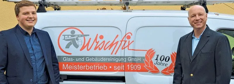 Julian May: Also, ich muss ehrlich sagen, als ich aus der Schule herausgekommen bin, habe ich erst einmal gar nicht gewusst, was ich machen soll, obwohl die Firma da war. Nach der mittleren Reife habe ich zuerst eine andere Ausbildung gemacht, als Elektroniker, und danach, als ich auch persönlich gewachsen war, habe ich mir nochmals Gedanken darüber gemacht, was ich eigentlich will. Und dann habe ich die Ausbildung als Gebäudereiniger angefangen, aber nicht bei uns im Betrieb, sondern in einem externen Unternehmen. Ich habe mich da beworben, habe aber auch klar gesagt, wie der Stand der Dinge ist: dass ich die Ausbildung machen und dann nach Hause in den Betrieb gehen will.